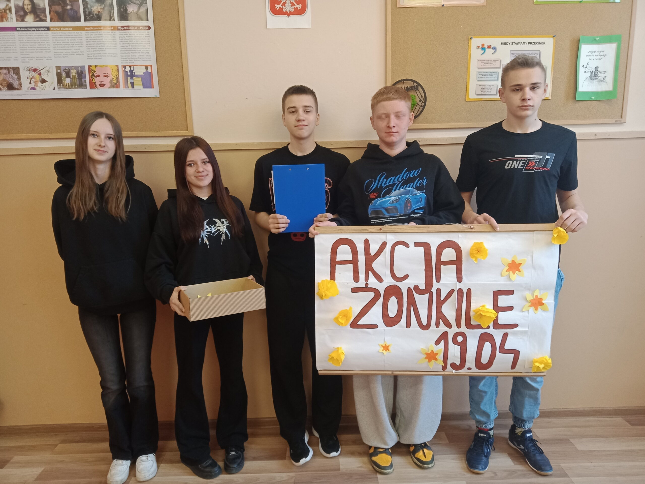 17 kwietnia uczniowie klasy ósmej przygotowali wystąpienie związane ze zbliżającą się rocznicą wybuchu powstania w getcie warszawskim. Zaprezentowali wcześniej przygotowany plakat oraz rozdali nauczycielom jak i uczniom własnoręcznie wykonane papierowe żonkile. Podczas swego wystąpienia ósmoklasiści przybliżyli genezę i cel Akcji Żonkile. Opowiedzieli o roli Marka Edelmana, oraz wyjaśnili dlaczego właśnie żonkil symbolem tej ogólnopolskiej kampanii, organizowanej przez Muzeum Historii Żydów Polskich POLIN. 19 kwietnia przypada 83. rocznica wybuchu powstania w getcie warszawskim, największego zbrojnego zrywu Żydów podczas II wojny światowej, a zarazem pierwszego powstania miejskiego w okupowanej Europie. Akcja Żonkile to wyraz pamięci o tragedii cywilów, to akcja ponad podziałami.