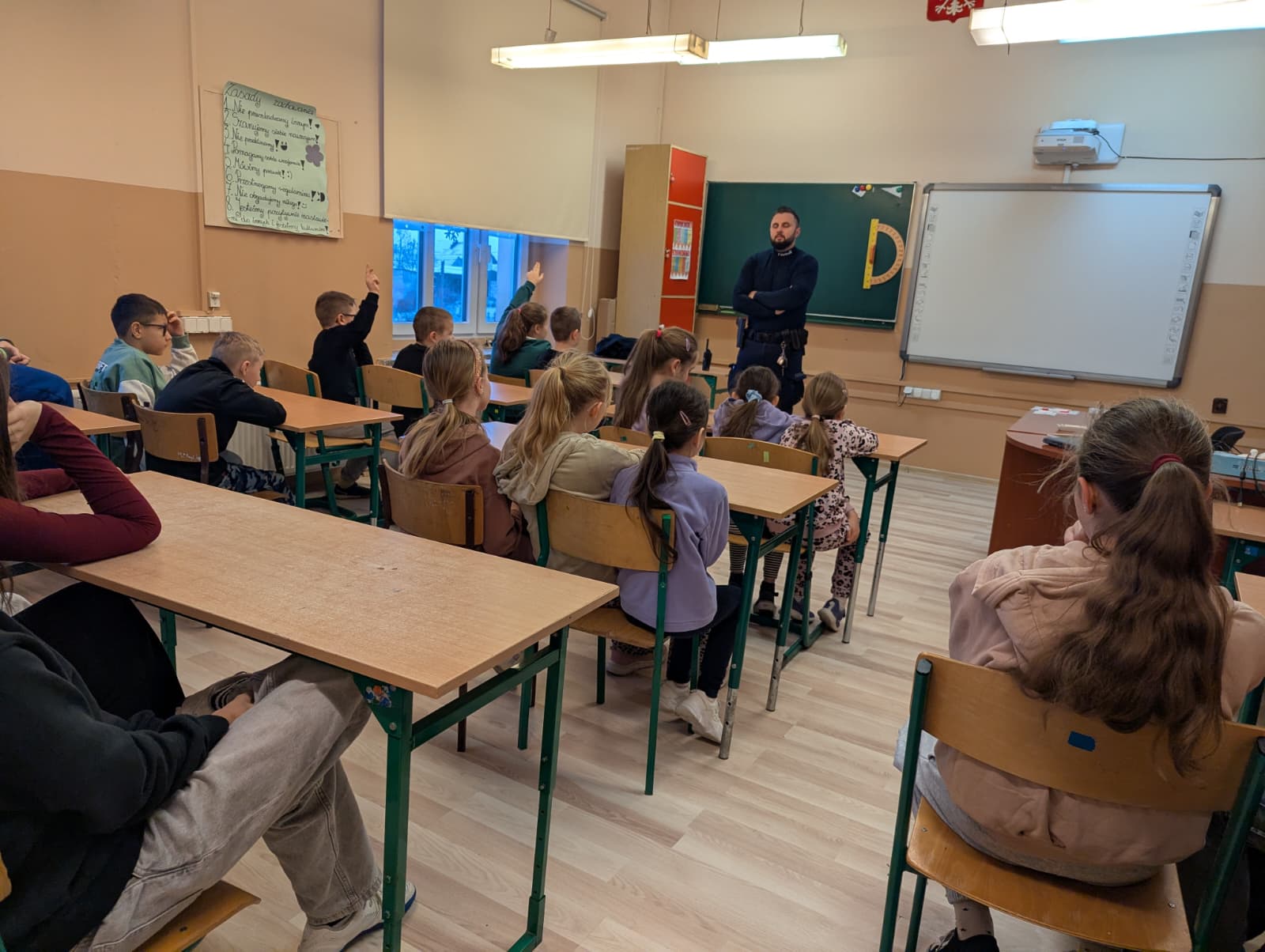 W ostatnim dniu przed feriami zimowymi naszą szkołę odwiedził policjant, który przeprowadził z uczniami ważną prelekcję na temat bezpieczeństwa podczas zimowego wypoczynku. Przypomniał zasady bezpiecznego poruszania się po drogach, zachowania się na śniegu i lodzie oraz jak unikać niebezpiecznych sytuacji. Spotkanie było bardzo pouczające i pomogło uczniom lepiej przygotować się do bezpiecznego i radosnego spędzenia ferii. Dziękujemy za cenne wskazówki i życzymy wszystkim bezpiecznych i udanych ferii zimowych!